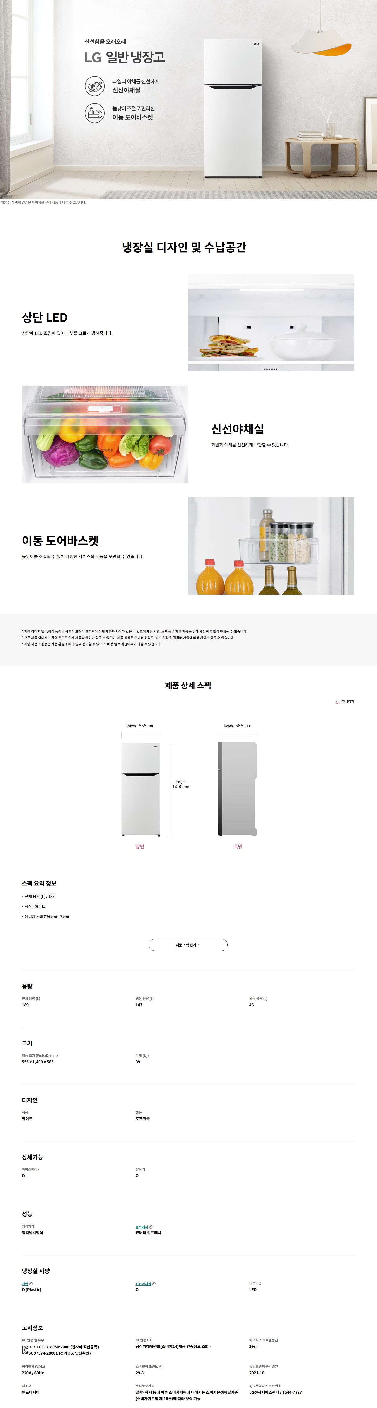 LG전자 일반냉장고 189L B182W13